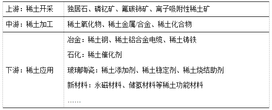 稀土财产链首要由稀土资本开采,稀土资料制备,和稀土操纵范畴组成。此中:稀土资本开采首要触及的稀土矿物有氟碳铈矿、茕居石、磷钇矿,和离子吸附性稀土矿;稀土资料制备包含精矿分化和冶炼;稀土操纵范畴包含冶金、军事、石化、玻璃陶瓷、农业、新资料等范畴,是我国关头的计谋性资本。