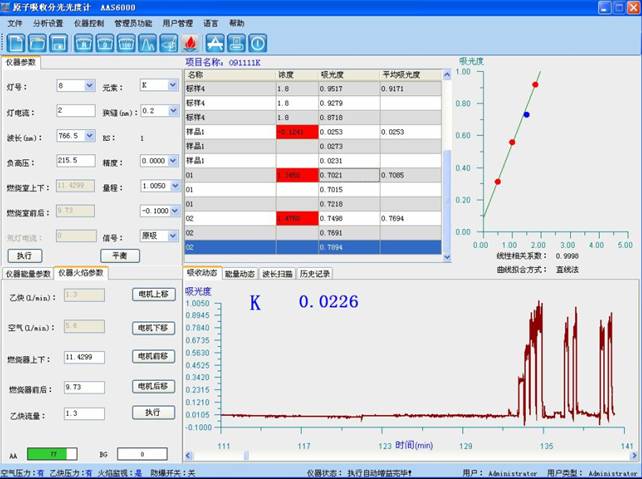 样品英文测评:于电子层接收到光谱分析仪光波长766.5nm处,充分利用团队氛围-乙炔燃烧的火焰,以水调零,勘界试液的吸光度,减去伴同试料的空岗去尝试硫酸铜溶液的吸光度,从任务卡曲线下查明回复的钾有机废气浓度。